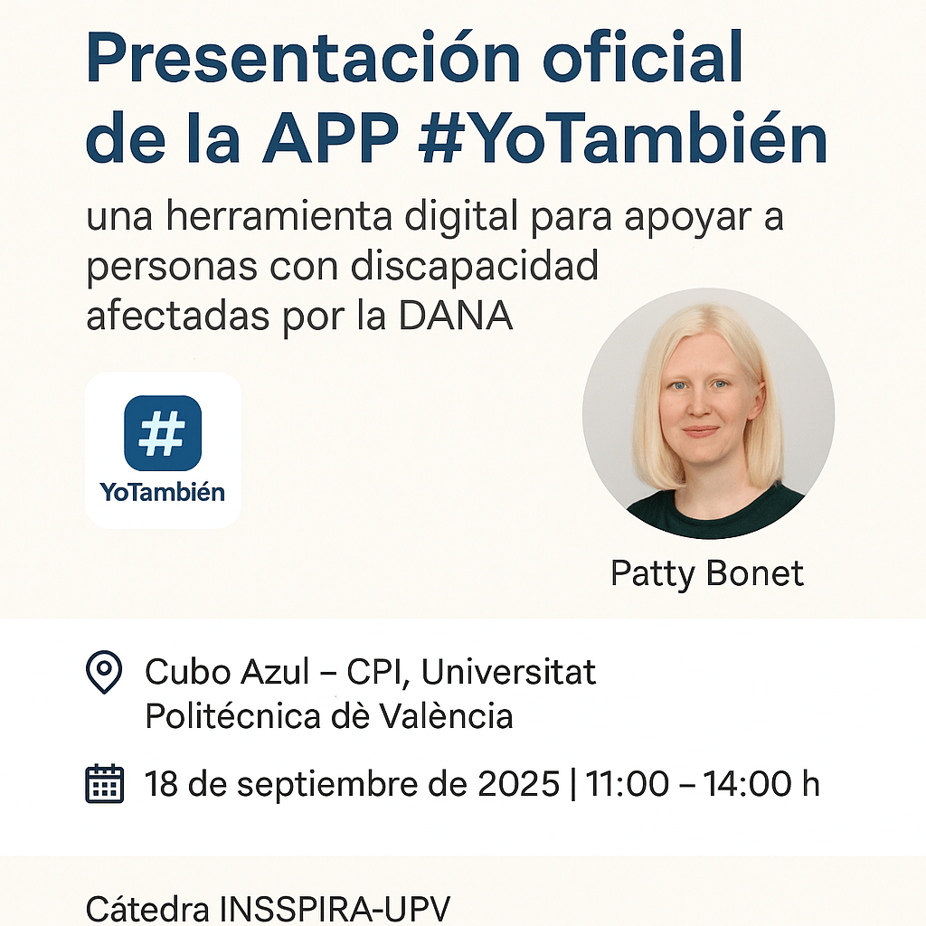 Desde la Cátedra de Servicios Sociales UPV te invitamos a asistir a la presentación de una iniciativa innovadora, útil y profundamente social: la nueva APP #YoTambién, una herramienta digital diseñada para acompañar, apoyar y empoderar a personas con discapacidad que se han visto afectadas por la DANA en la Comunidad Valenciana.